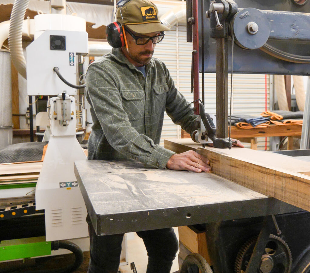 Although many of the woods Andy uses, such as walnut and white oak, are sourced from the East Coast, he frequently incorporates native Texas species like mesquite, pecan, and escarpment cherry. “Texas woods have so much character,” he explains. “Their knots, voids, and imperfections tell a story and add unique charm to each piece.” Andy sources much of his Texas wood from Berdoll Sawmill, east of Austin, and maintains an impressive stockpile of lumber for future projects.